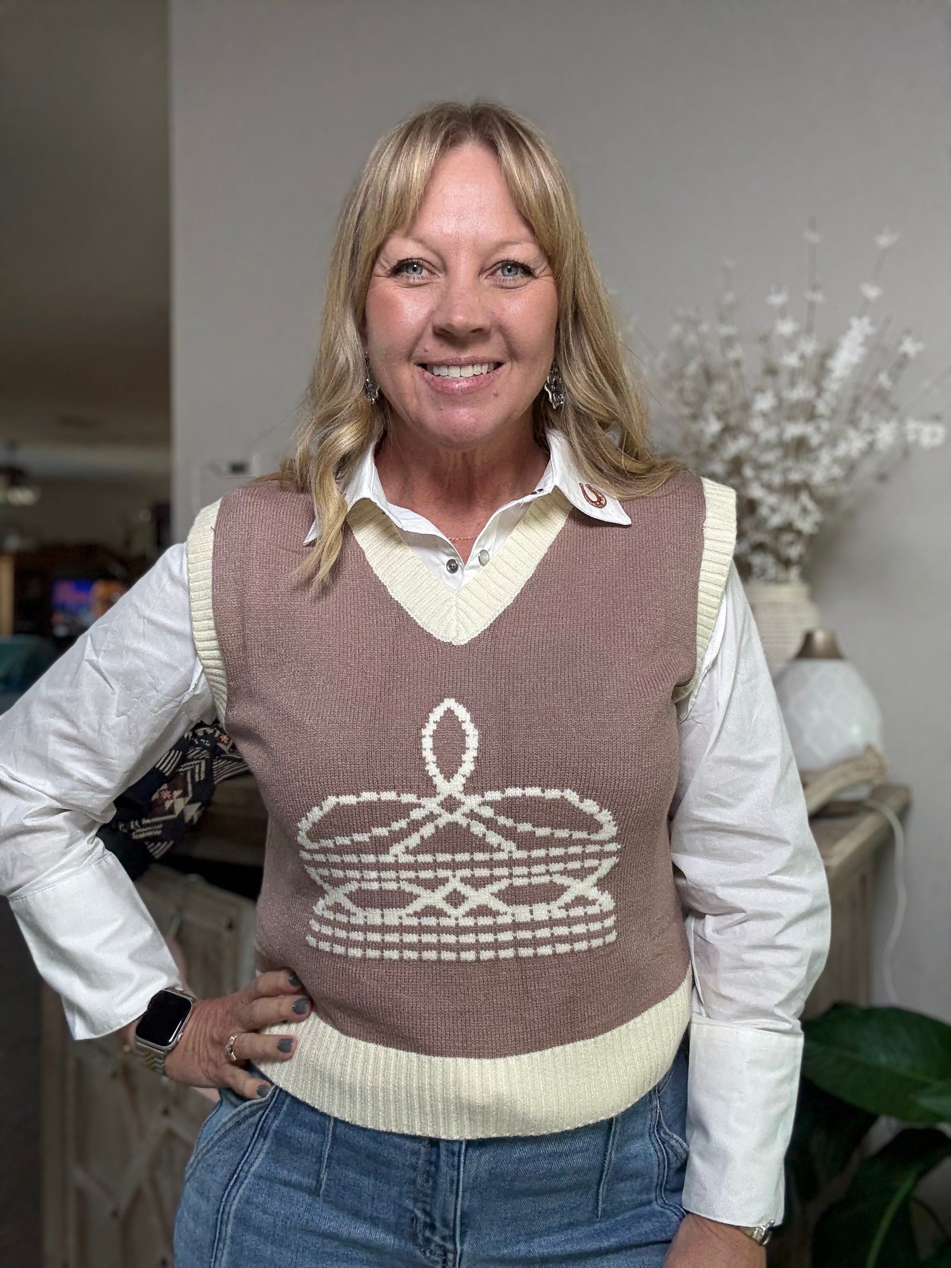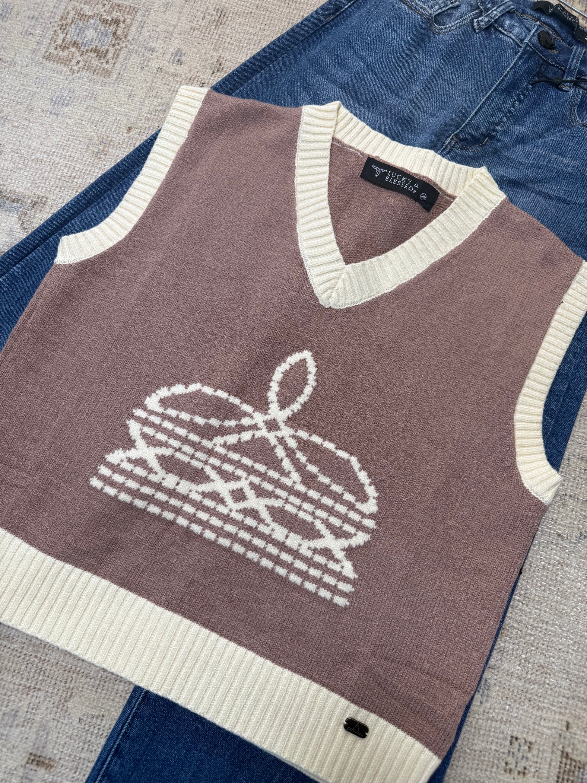 This Western-inspired embroidered pullover sweater brings cozy chic to the cowgirl wardrobe. Crafted in a soft beige knit, it features bold rust-toned boot stitch embroidery that adds instant rodeo flair. The statement embroidery is strategically placed across the chest in a mirrored pattern, giving the sweater a unique and eye-catching silhouette. Ribbed cuffs and hem offer a snug fit, while subtle red stitching on the collar and wrists enhances the rustic detail. Perfect for cooler weather, this long-sleeve sweater pairs effortlessly with dark wash denim and a statement belt for an authentic Western look. Whether layered under a denim jacket for the rodeo or worn solo for a laid-back ranch vibe, this top is a must-have for Fall retail floors.